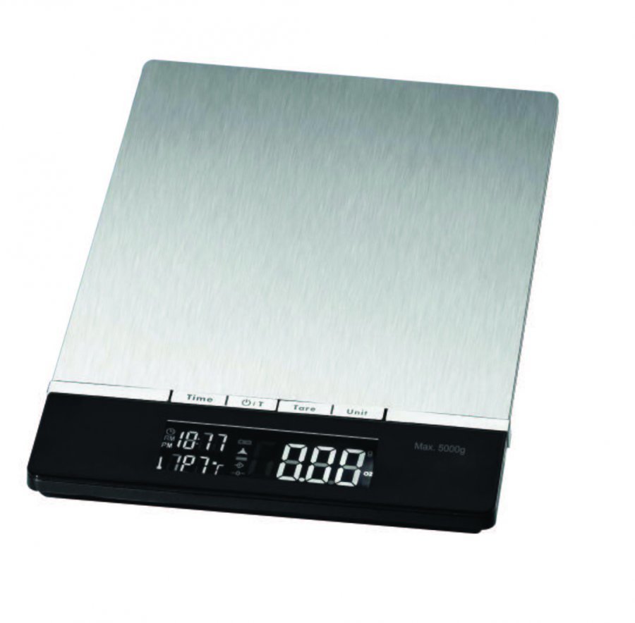 Keittiövaaka mausteiden ja muiden elintarvikkeiden punnitukseen. – ruostumatonta terästä – tarkkuus 1 g – maks. paino 5 kg – paristot 3 x AAA (ei sis.)