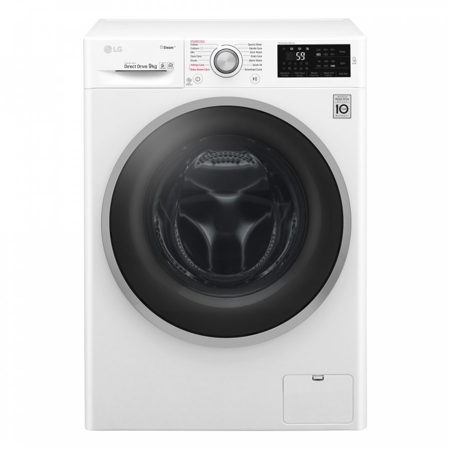 LG F4J6VY1W höyrypesukone 9 kg täyttömäärällä! Energialuokka A+++ (-20%). Linkous 1400 rpm/min. 14 pesuohjelmaa. Allergiaohjelma SpaSteam höyry. 6 MotionDD. NFC