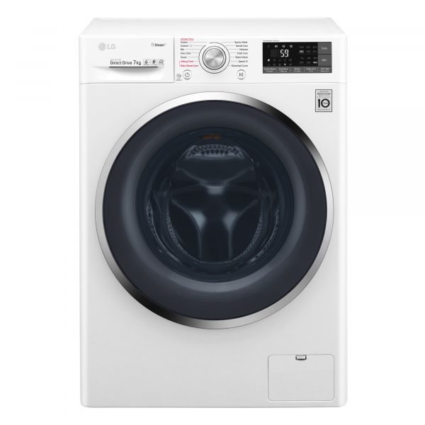 LG F4J7QY2W pesukone 7 kg täyttömäärällä! Energialuokka A+++ (-40%). Linkous 1400 rpm/min. 14 pesuohjelmaa. Allergiaohjelma SpaSteam. TurboWash. 6 MotionDD. Wi-Fi.